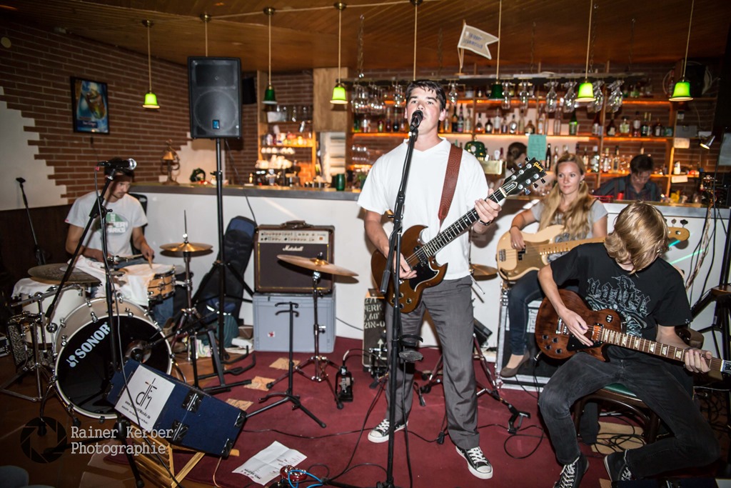 Nach einer kurzen Umbauphase betraten die „Hirnrocker“ der Gruppe „beige“ aus Norderstedt, bereits zu Gast im letzten Jahr und somit einigen Gästen bekannt, die Bühne. Die Interessen der Band sind laut ihrer Facebook Seite „Live-Gigs und mit Fans feiern“ und so erfreuten sich diese wieder einmal mehr über die Zusage und den Auftritt der Band. Ihre Songs vom Album „Tabularasa“ im Gepäck. „Vielleicht“, „Laut“ und „Kompliziert“ durften dabei nicht fehlen. Aber auch neue Titel wie „Fan“ oder die neue Single „Dein Kleid“, mit Hinweis auf die große Single-Release Party am 06. September im Kaiserkeller in Hamburg, kamen bei den Zuhörer gut an.