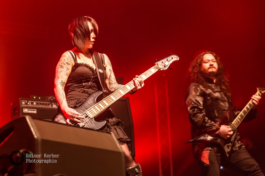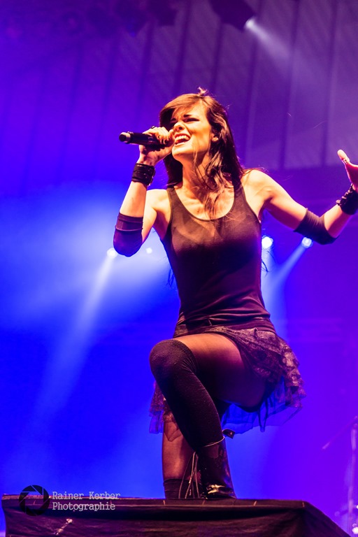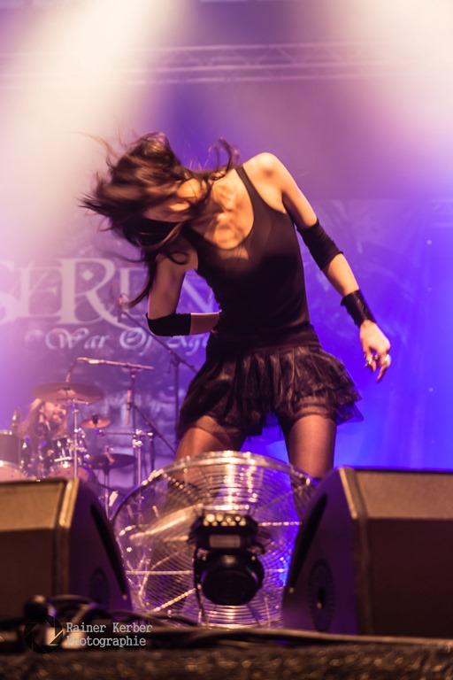 Und Female Fronted ging’s dann weiter, mit den Symphonic Metallern Serenity aus Österreich. Vor gut einem Jahr hat sich die Band mit französischen Sopranistin Clémentine Delauneyverstärkt, die zuvor bei mehreren Tourneen als Gastsängerin auf der Bühne stand. An der Seite von Georg Neuhauser sorgte sie für hervorragende Gesangsleistungen. Wunderschöne Melodien, viel Bombast. Super Gitarren-Arbeit Ersatz-Gitarrist Christian Hermsdörfer.