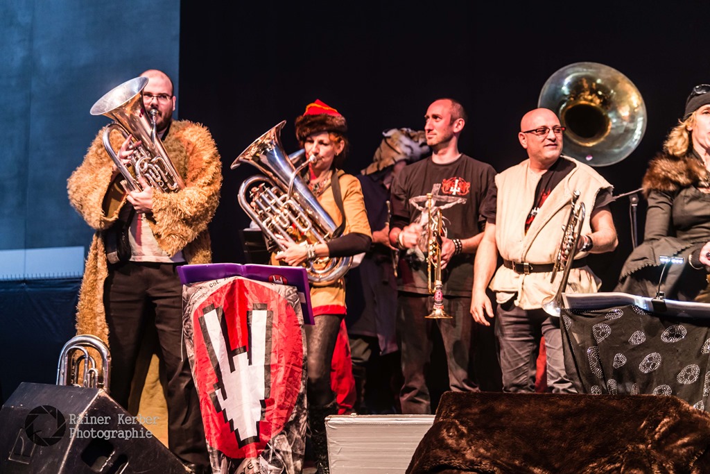 Ein Rahmen-Programm gab’s natürlich auch wieder. Außer Attila & les II, III, IV mit ihrem Fanfare Metal spielte auch der Metal-Geiger Michelangelo auf.