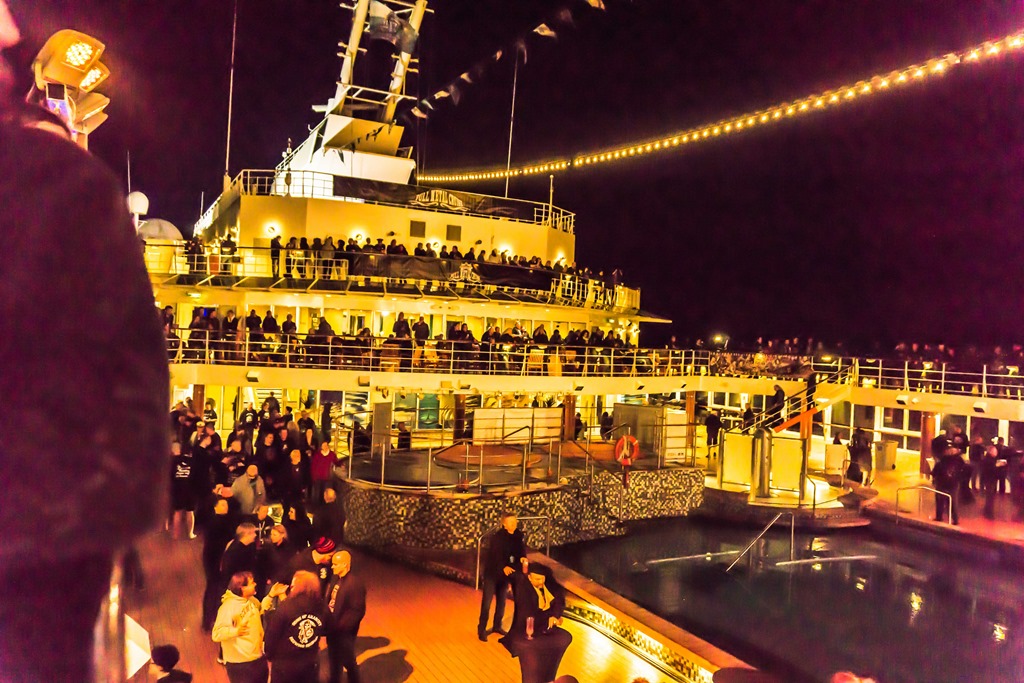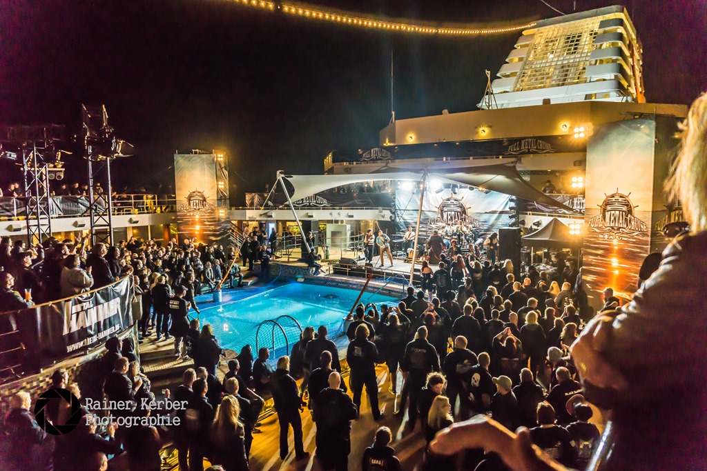 Eine Viertelstunde nach Mitternacht begann die Show von Doro, die auch in diesem Jahr wieder mit an Bord war. Es gab ein dreiviertelstündiges Best Of der Metal Queen mit Songs aus allen Schaffensperioden. Und die Fans auf dem Pooldeck gingen voll mit! Es ging heiß her, obwohl es schon empfindlich kühl war.