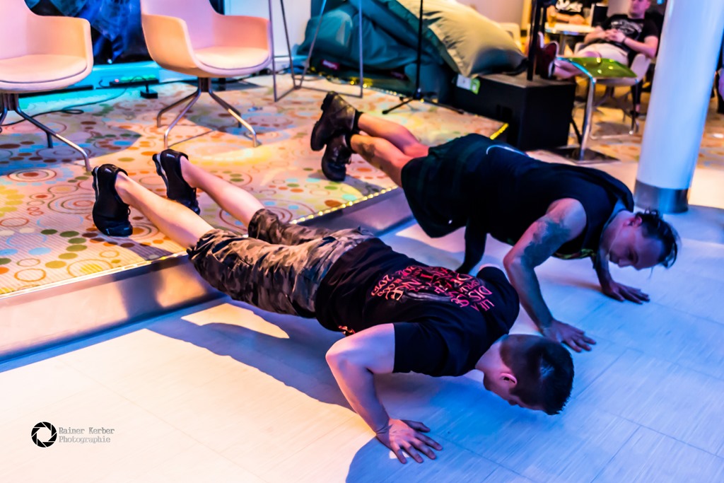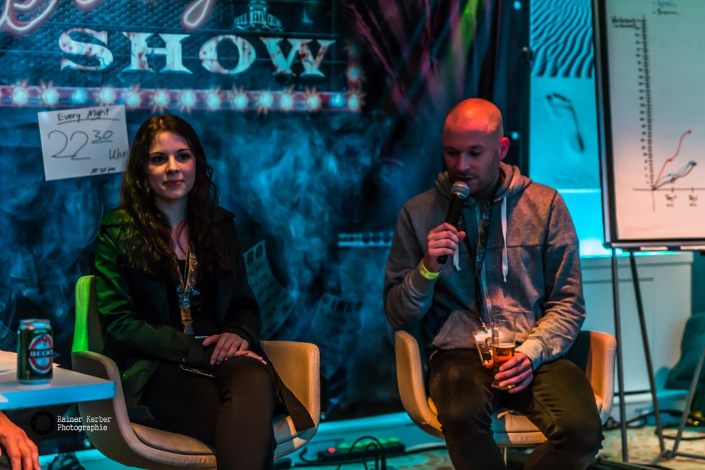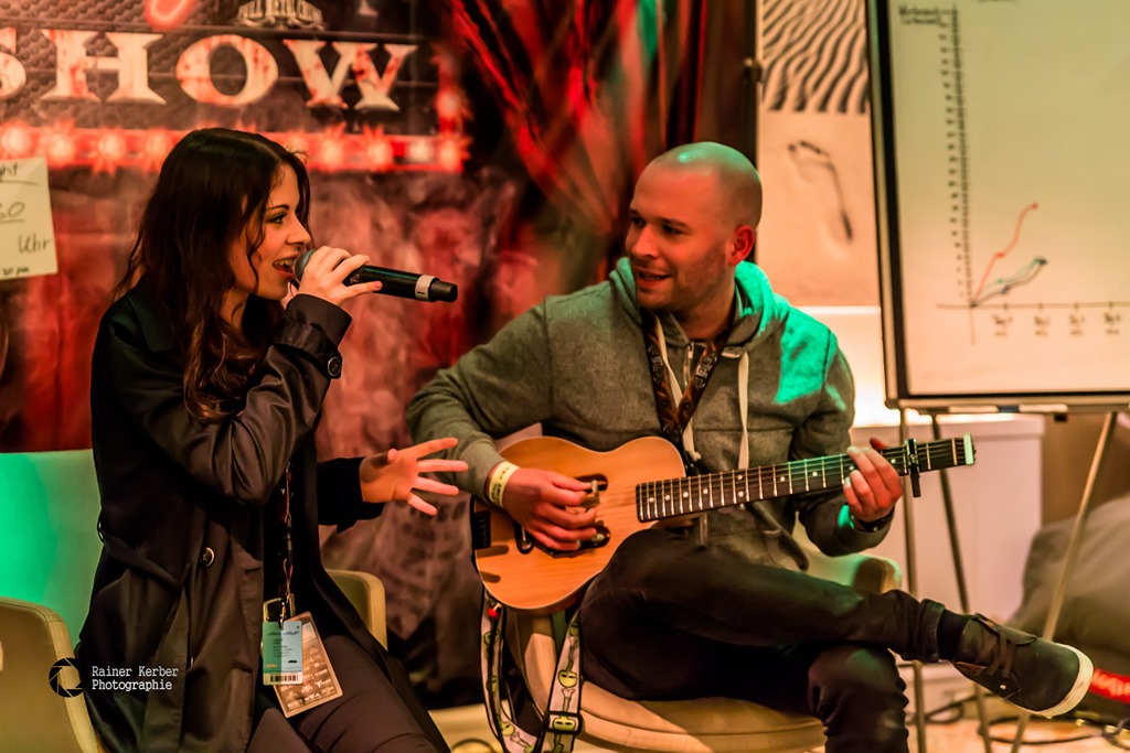 Christopher Hummels von Beyond The Black. Als kleinen Akustik-Set präsentierten die beiden dann “In The Shadows” vom Debüt-Album “Songs Of Love And Death”. Weitere Gäste waren Jörg Sonntag (bekannt vom Beat Club) und “Der Captain” in der “Captain’s Corner”. Und abschließend gab’s dann “Schlag den Maschine” – wer kann mehr Liegestütze, Maschine oder ein Kandidat aus dem Publikum – und noch ein Runde Metal Bingo. Insgesamt ein sehr kurzweiliges Programm.