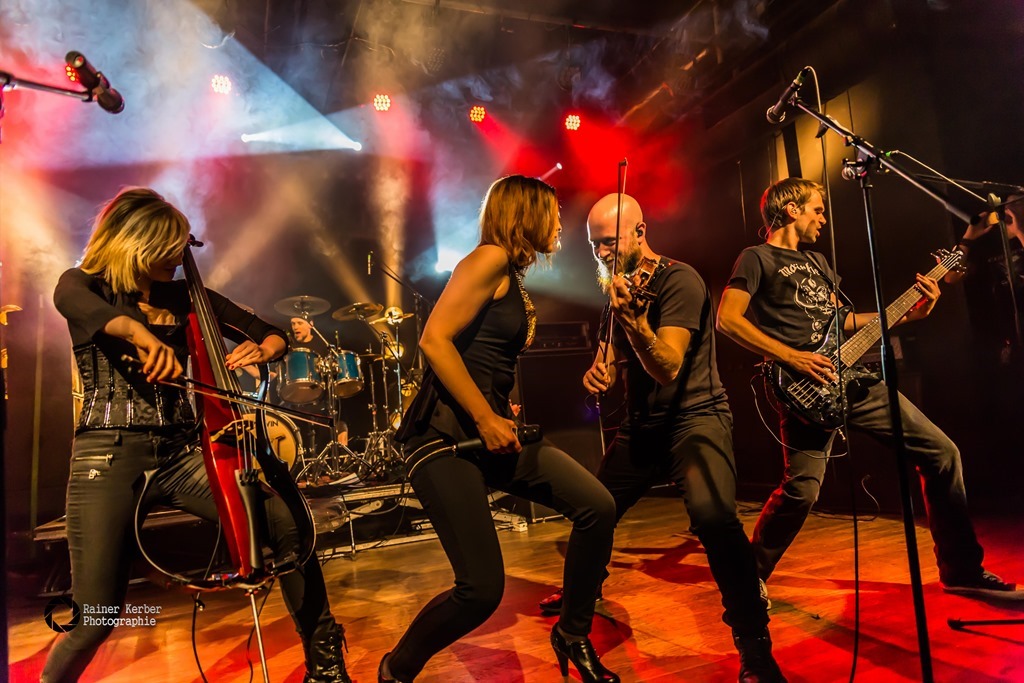 Ja und noch eine weitere Band mit weiblichen Gesang steht auf meinem Merkzettel. Lyriel, mit den beiden Sängerinnen Jessica Thierjung und Linda Laukamp, die zusätzlich auch noch Cello spielt. Die Entwicklung dieser Band habe ich auch schon seit Jahren verfolgt. Nun konnte ich sie erstmalig in diesem Jahr bei der zweiten Female Fronted Night in Wuppertal erleben. Aus dem Mittelalterrock kommend, geht Lyriel jetzt so richtig ab, Rockmusik vom Feinsten.