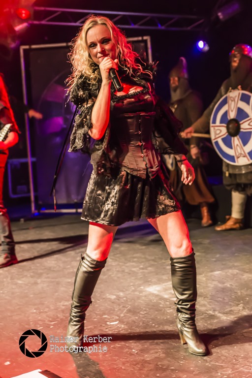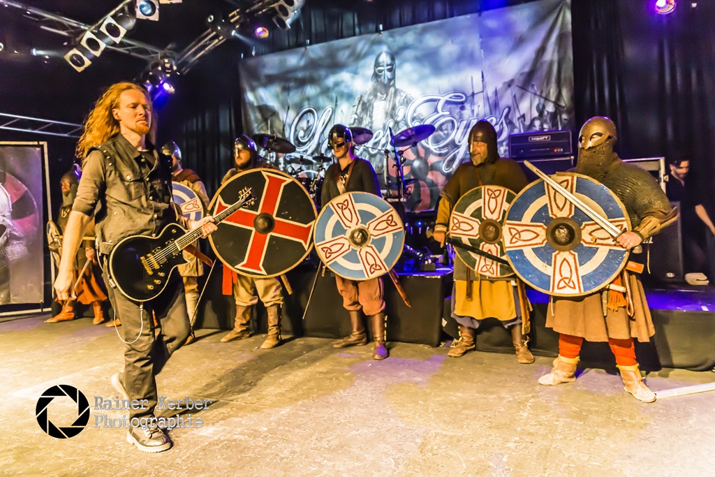 Intro “Sweven”, das die Show von Leaves’ Eyes einleitete. Dazu kamen die „Jomsborg Elag Starigard“ Wikinger auf die Bühne und stimmten somit auch optisch auf die Show ein.