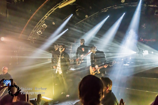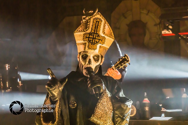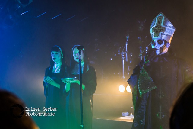 Vor der Show von Ghost gab’s erst mal Weihrauch satt, an beiden Seiten der Bühne wurden mehrere Räucherstäbchen angezündet. Eingeleitet wurde die Show der Schweden dann mit zwei überlangen Intros, bevor Papa Emeritus III. und seine Nameless Ghouls unter Beifallsstürmen die Bühne der
