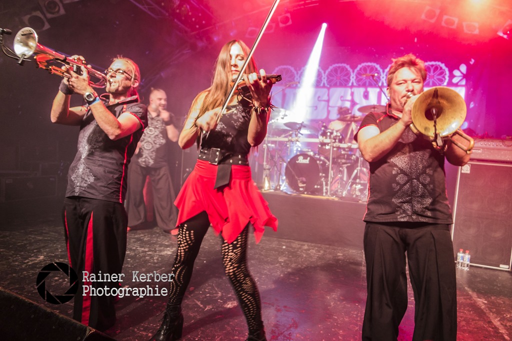 Für mich waren Russkaja aus Wien DIE Entdeckung des Abends. Seit nun mehr über zehn Jahren beglücken die Musiker ihre Fans mit ihrer “Russian Turbo Polka“. Neben der Metal typischen Rhythmus-Abteilung kommen