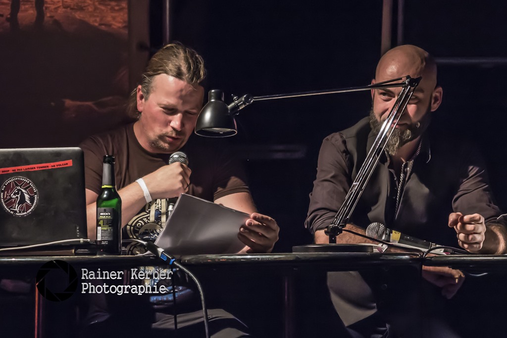 Im MarX lasen dann Fuchs und Wolf-Man von den Apokalyptischen Reitern aus ihrem Buch “Wie der Weltuntergang Teil unseres Lebens wurde”. Interessante, witzige aber auch zum Nachdenken anregende Episoden. Äußerst beeindruckend, der Bericht über eine Konzert-Tour durch Russland. Das war Kopfkino pur.