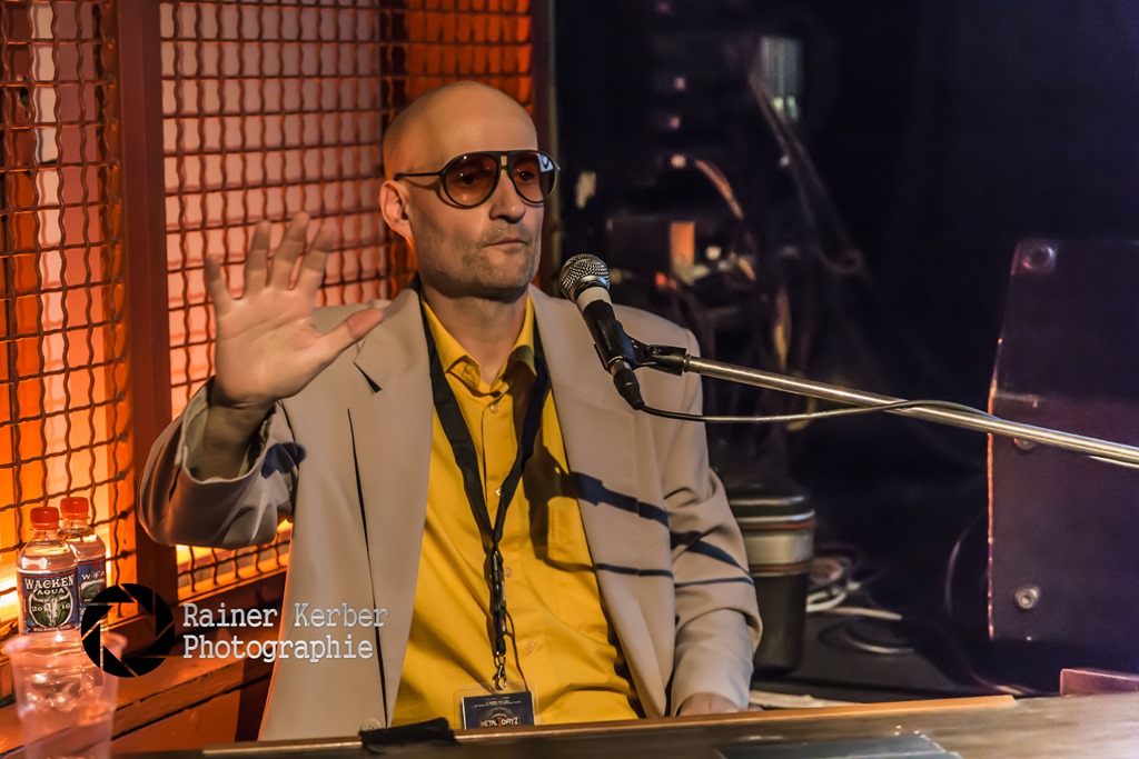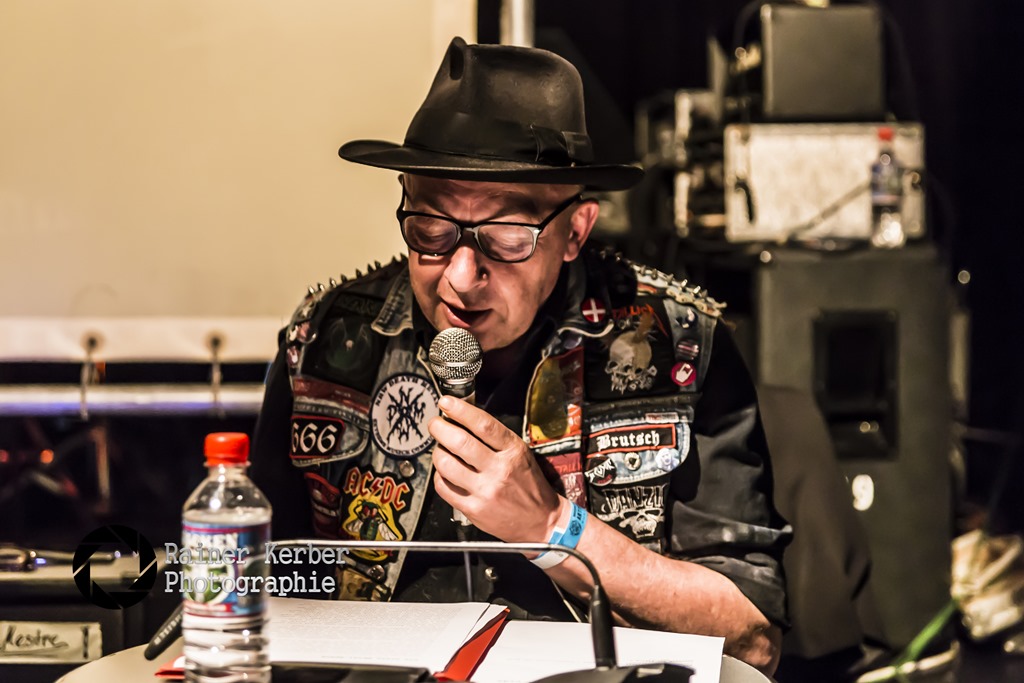 Vorletzter Programmpunkt im MarX war eine Lesung zu den Büchern “Kumpels in Kutten – Heavy Metal im Ruhrgebiet” von Holger Schmenk. Der erste Band erschien im Jahre 2010, Band zwei soll noch in diesem Jahr fertiggestellt werden. Der Autor hat Interviews mit vielen Zeitzeugen geführt, Mille Petrozza (Kreator), Peter Burtz (Sänger von Steeler und erster Chefredakteur des Metal Hammer) und viele andere kamen zu Wort. Dazu wurde Bilder von Musikern aus Vergangenheit und Gegenwart gezeigt.