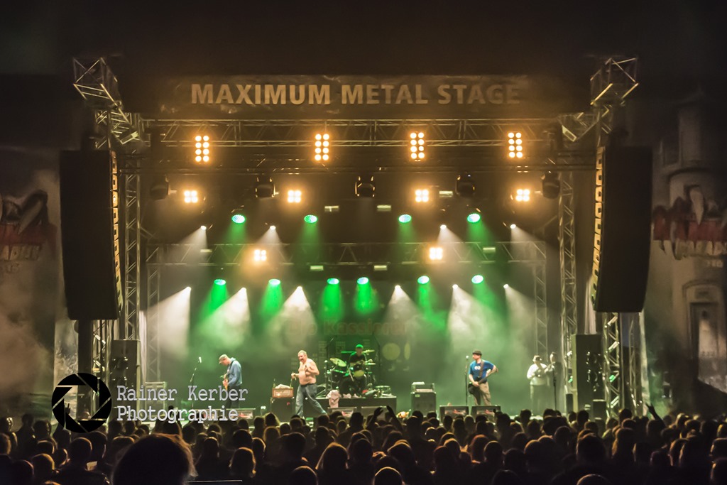dass sie noch lange nicht zum alten Eisen gehören. Der Platz vor der Bühne war bereits sehr gut gefüllt und die Fans in großartiger Stimmung. Zur selben Zeit spielten im Zelt auf der Maximum Metal Stage “Die Kassierer”. Mit Metal hatte das recht wenig zu tun. Und gut war es auch nicht, was die Band da präsentierte. So erschließt es sich mir nicht, warum die Band auf der großen Bühne auftreten durfte.