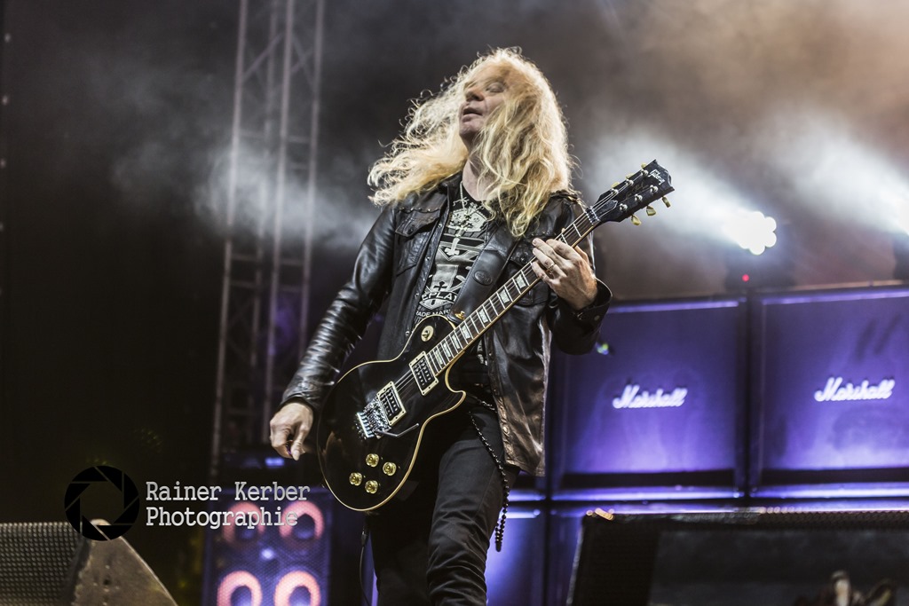 Aber auch drei weitere Songs des aktuellen Albums standen auf dem Programm. Mit “Wheels Of Steel” endete dann reguläre Teil. Selbstverständlich wurden Saxon auch an diesem Abend nicht ohne Zugabe von der Bühne gelassen. So folgten noch die Knaller “Denim And Leather” und “Princess Of The Night” bevor im großen Party-Zelt endgültig die Lichter ausgingen.