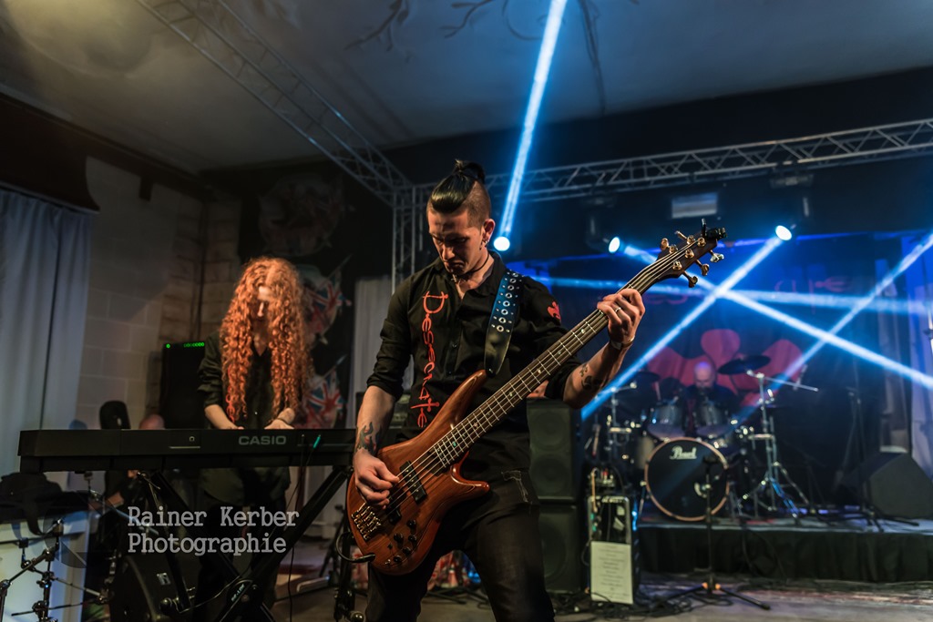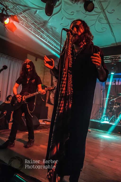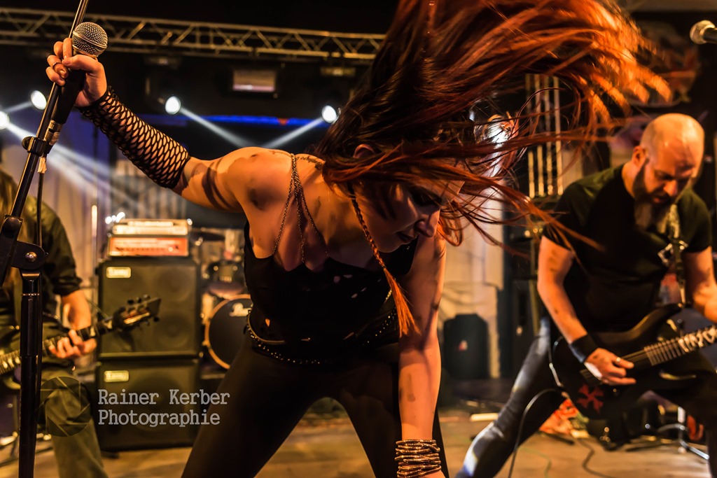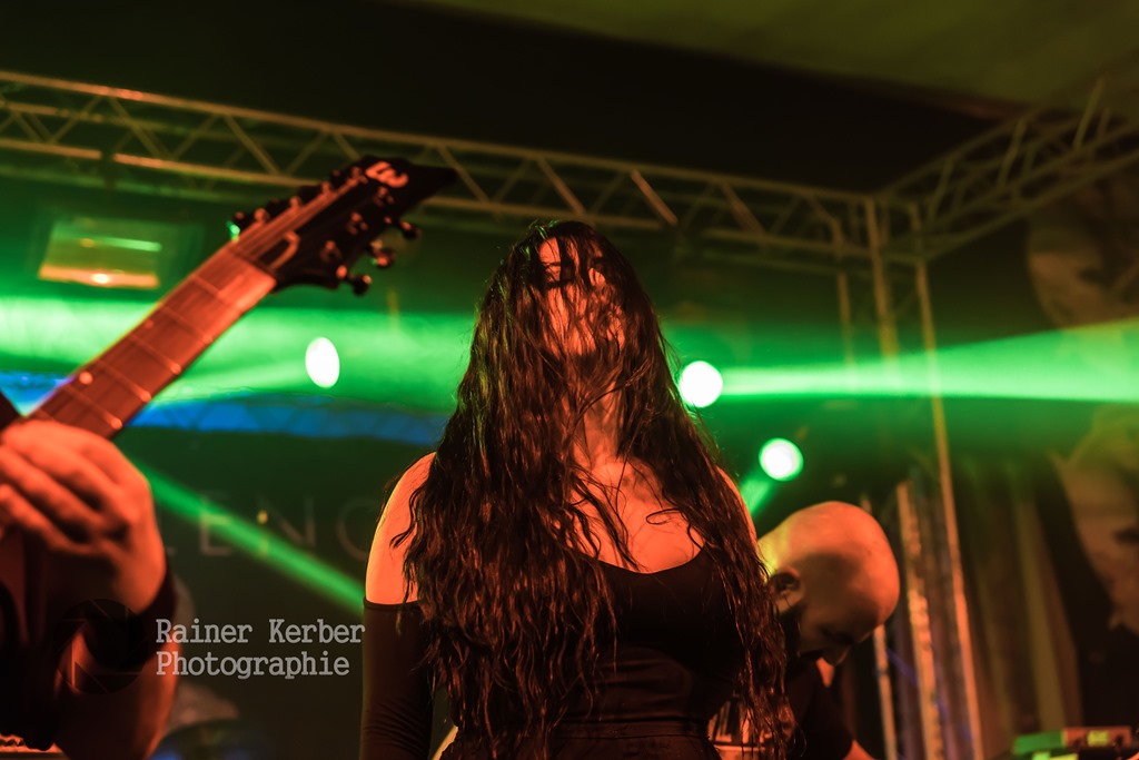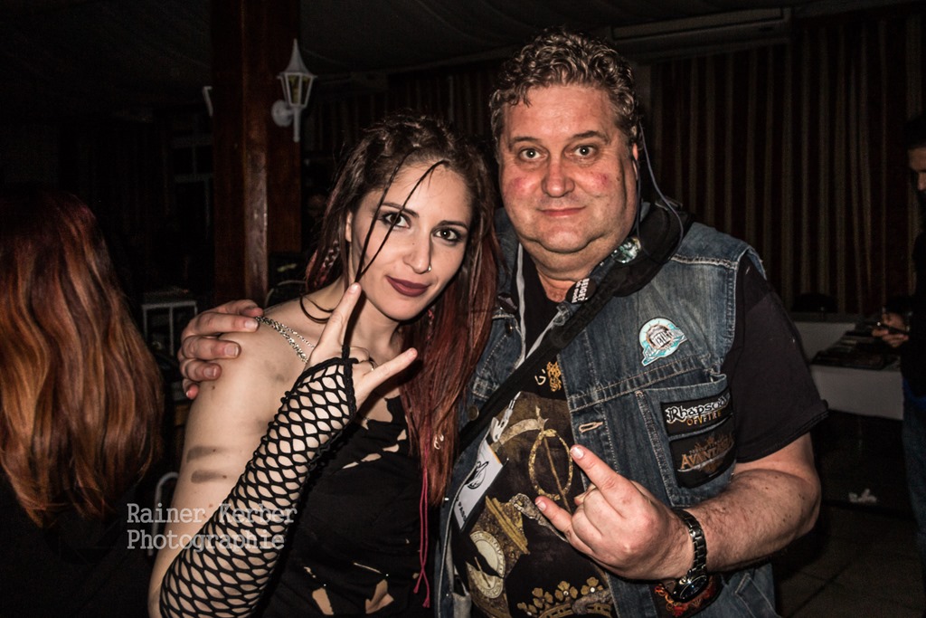 Die Samstags-Session startete drei Stunden früher, bereits um 17:00 Uhr. Mit Dimlight stand erneut eine Band aus Griechenland auf der Bühne. Nach dem Ausstieg von Sanna Salous im August 2014 ist Eva Fourlanou die Sängerin. Sie konnte mich mit ihrer klaren und kraftvollen Stimme voll überzeugen. Dazu steuerte Gitarrist Peter Miliadis (aka Invoker) tiefe und brutale Growls bei. Das war hervorragender Symphonic Metal mit einigen Death Metal Elementen. Leider wurden die Bass- und Keyboard-Parts als Samples eingespielt.