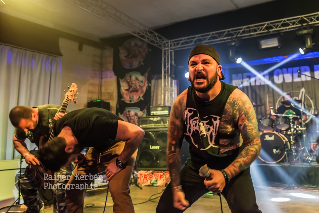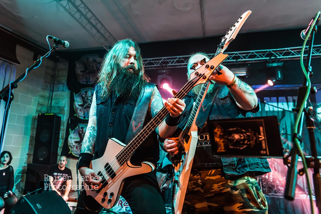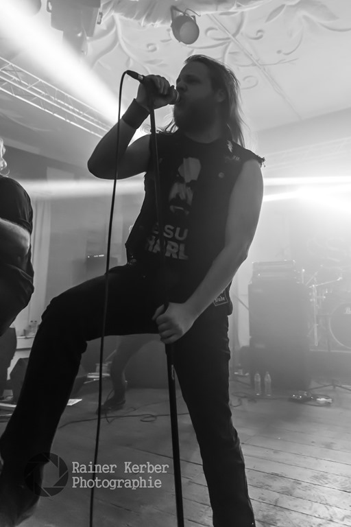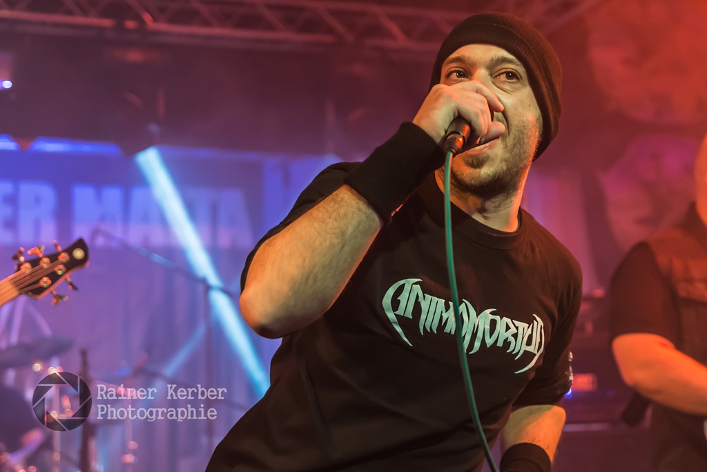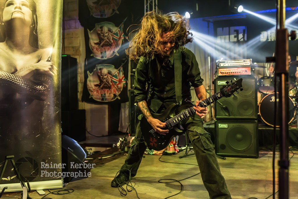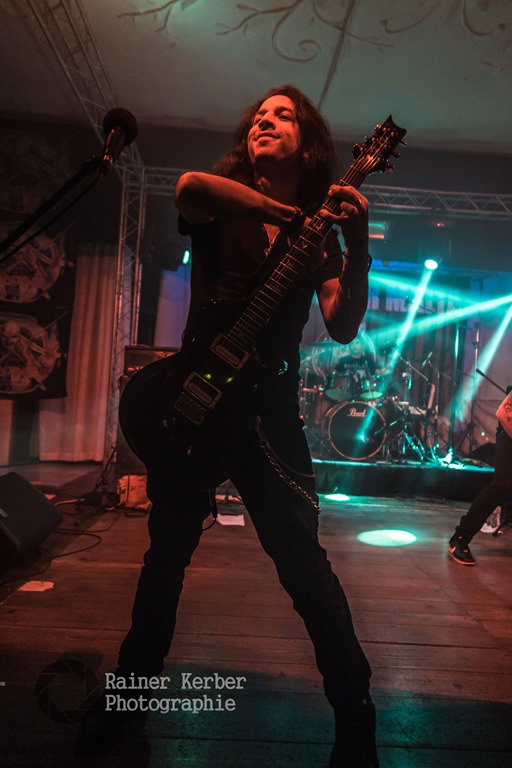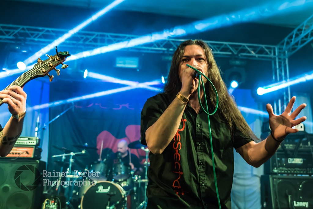 Opener am Freitagabend waren Animamortua aus Malta. Gemäß ihrer Facebook-Seite spielt die Band Thrash Metal. Meines Erachtens trifft aber Power Metal mit spitzen hohen Schreien im Stile der frühen NWOBHM-Bands eher zu. Die Italiener von Desecrate geben u.a. In Flames als Referenz an – Melodic Gothic Deat Metal mit teilweise eingängigen Melodien. gesanglich dominierten zwar Growls, gelegentlich sang Gabry Giorgi aber auch mit sehr guter Klar-Stimme.