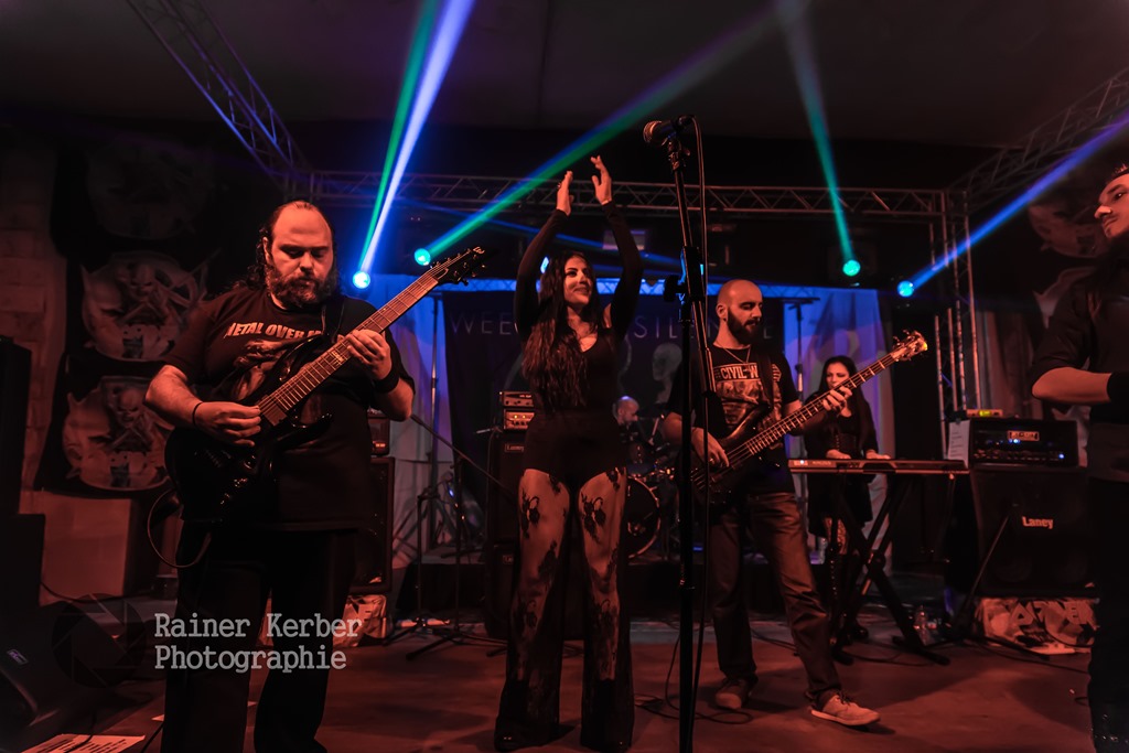 Als vorletzte Band des Abends kamen Weeping Silence auf die Bühne. Die Bandmitglieder haben nun bereits zum dritten Mal dieses Festival organisiert. Ich konnte die Band bisher zweimal live erleben, 2015 beim Dames of Darkness im Robin 2 sowie beim letztjährigen Metal over Malta. Ich bin immer wieder beeindruckt, wie Musiker von dieser sonnenüberfluteten Insel einen so düsteren Sound auf die Bühne bringen. Obwohl die Band-Mitglieder in der Nacht vor dem Auftritt wohl nur drei Stunden geschlafen haben und sicherlich auch davor eine äußerst stressige Zeit hinter sich gebracht haben, war von Müdigkeit nichts zu spüren. Großartig! Weniger schön war, dass meine Kamera während des Konzerts ihren Geist aufgab.