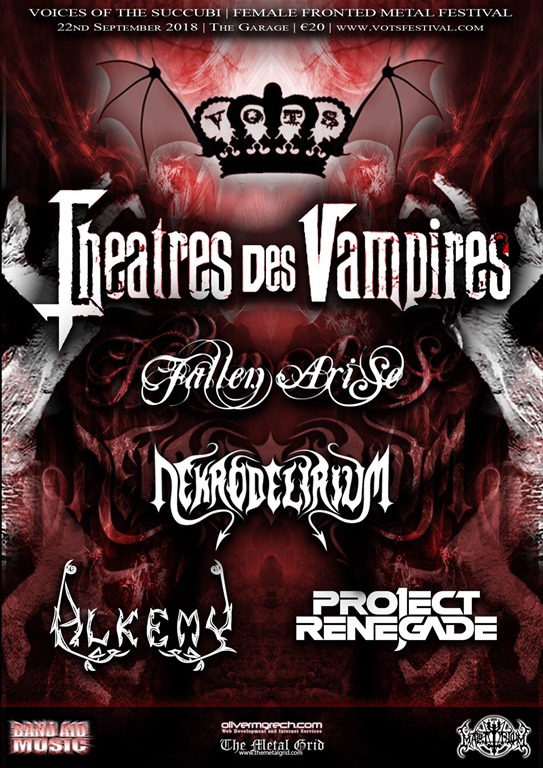Austragungsort ist in diesem Jahr das The Garage in der Stadt Ħaz-Zebbug. Am 22. September werden dort fünf Female Fronted Bands unterschiedlichster Stilrichtungen spielen. Headliner des Abends sind Theatres des Vampires aus Italien. Die Band um Sängerin und Ober-Vampir Sonya Siccardi zelebriert seit mehr als zwanzig Jahren ihre “blutigen Messen”. In dieser Zeit wurden 10 Studioalben veröffentlicht. Live habe ich die Band bisher lediglich auf DVD (Moonlight Waltz Tour 2011) gesehen. Da wird es also Zeit, die Vampire direkt auf der Bühne zu erleben.